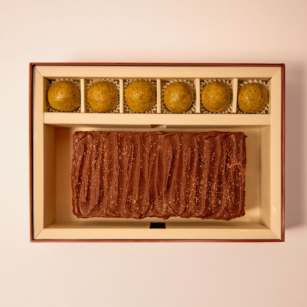 Chocolate Ganache Almond Cake and Pistachio, Apricot & Orange Truffles
